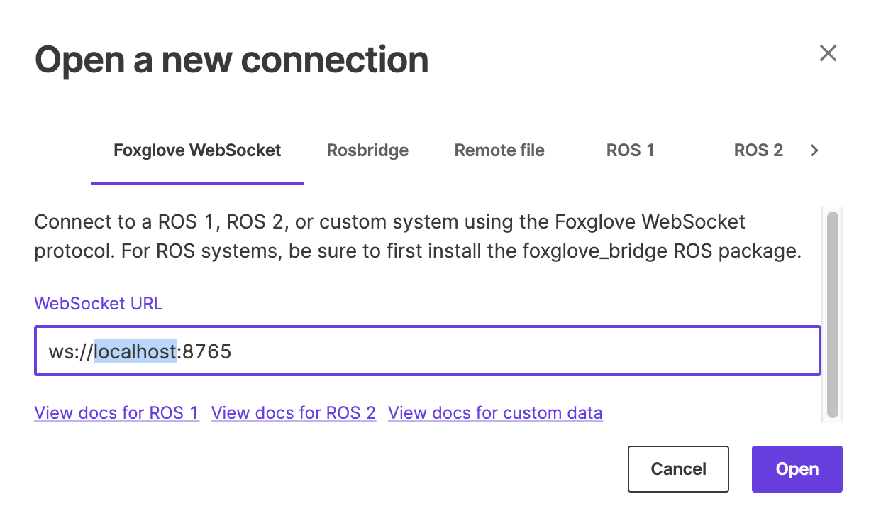 - RViz는 ROS 환경에서만 사용 가능하지만, Foxglove는 웹소켓 통신을 이용해 토픽을 주고 받기 때문에 Windows, Mac, Linux, 웹브라우저에서도 실행 가능하다.