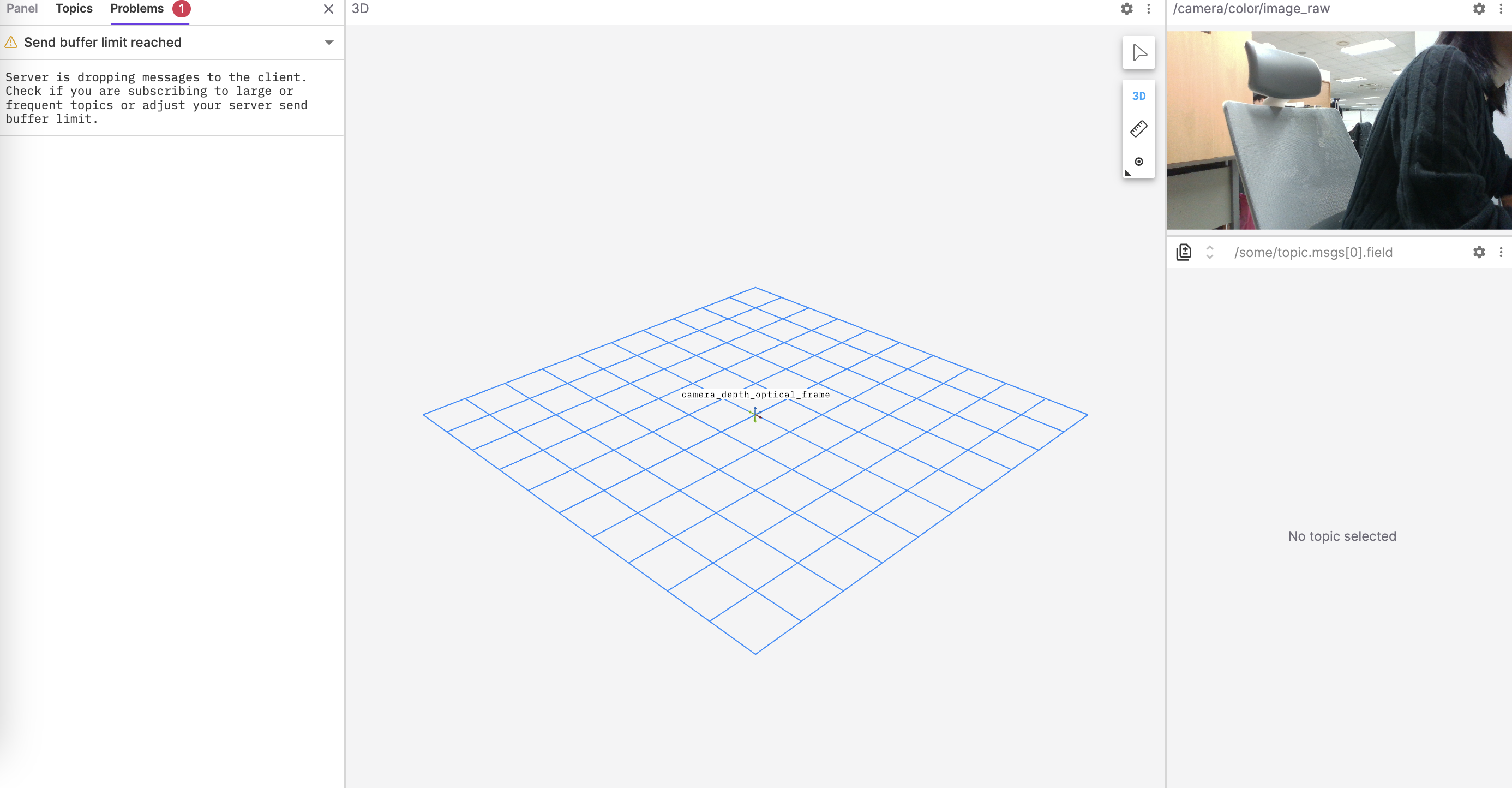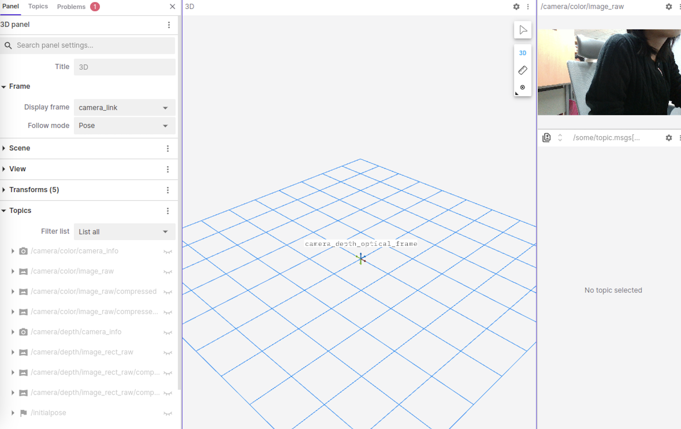 그리고 좌상단에 Open Connection -> ROS1 -> Open을 눌러주면 이와 같이 패널이 나오면서 토픽을 시각화할 수 있다.