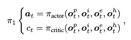 Learning-based legged locomotion 제어기는 주로 강화학습을 통해 발전되어져 왔으며, 이는 일반적으로 비대칭 actor-critic 훈련 내에서 정책 π1을 업데이트함으로써 달성된다.