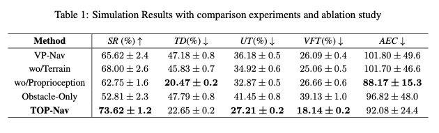 결과적으로 TOP-Nav는 로봇의 사전 지식의 분포를 넘어서는 지형이나 disturbance를 처리할 수 있고 시각적 제약을 극복할 수 있는 오픈 월드 내비게이션을 달성한다. 시뮬레이션과 실제 환경 모두에서 수행된 광범위한 실험을 바탕으로 TOP-Nav는 기존 방법들과 비교하여 오픈 월드 내비게이션에서 우수한 성능을 보여준다.