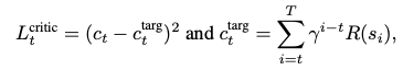ct는 πcritic으로부터 추정된 value function을 나타내며, 다음을 통해 업데이트된다.