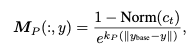 여기서 kp는 하이퍼파라미터이고 ct는 추정된 운동 평가이다. 더 낮은 운동 평가는 현재 로봇 방향의 잠재적으로 도전적인 지형이나 보이지 않는 장애물을 나타내므로, 우리는 ct를 MP의 중심 열에 할당하고 가장자리를 향해 감소시킨다. 이는 로봇의 운동이 예상치 못한 장애물이나 도전적인 지형에 의해 방해될 때 계속 전진하는 것을 방지할 것이다.