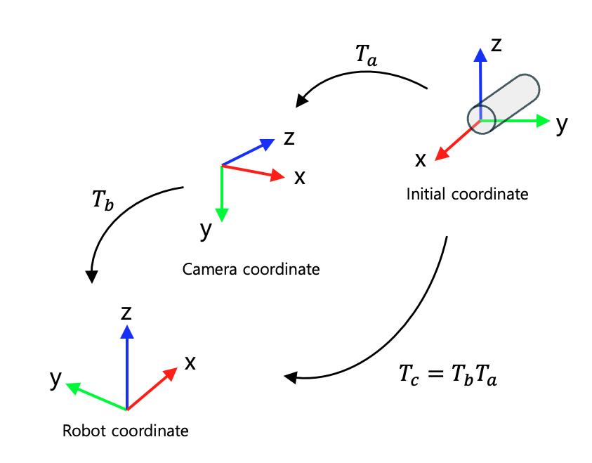- 내 태스크에서는 일단 로봇 좌표계 == World 좌표계이기 때문에 URDF나 캐드모델에서 구함