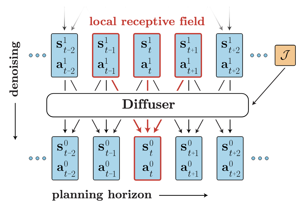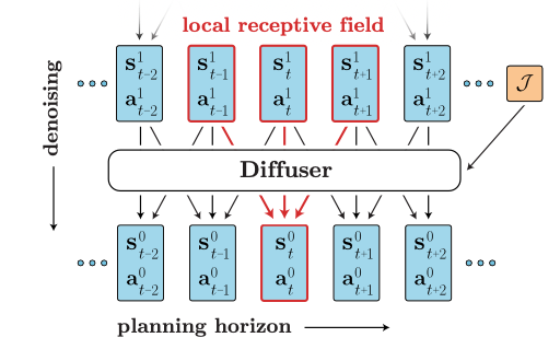 자기회귀적이거나 마르코프적이지 않음에도 불구하고, Diffuser는 완화된 형태의 시간적 지역성을 특징으로 한다.