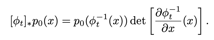 pt = [φt]∗p0: 시간 t에서의 분포는 초기 분포 p0를 φt로 변환한 결과