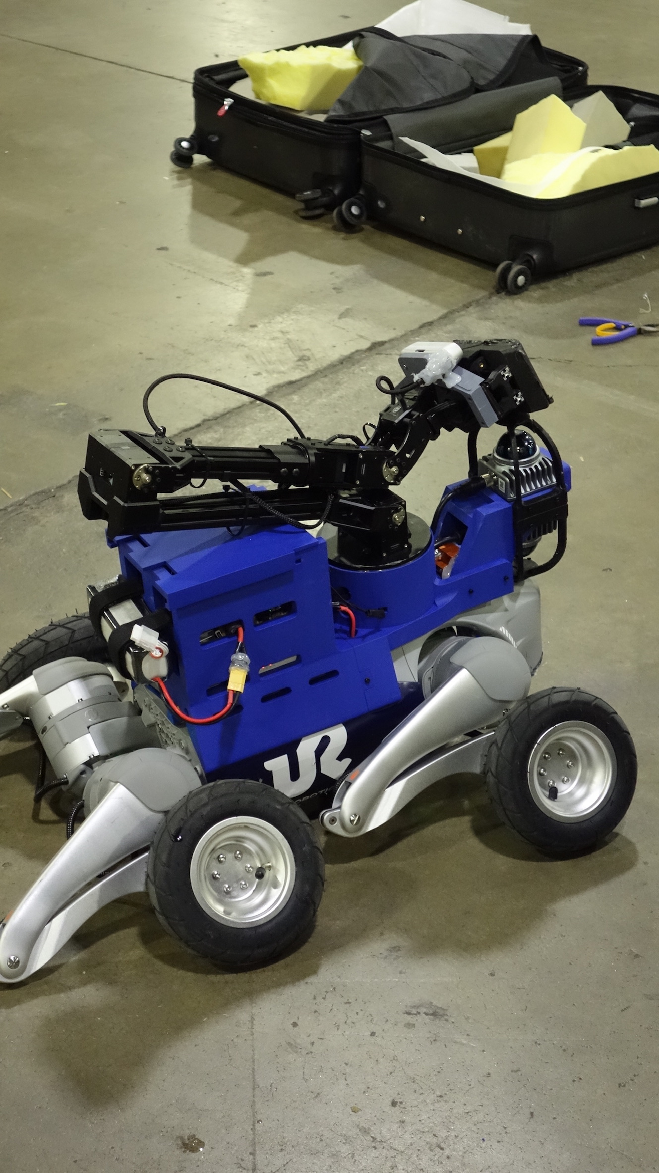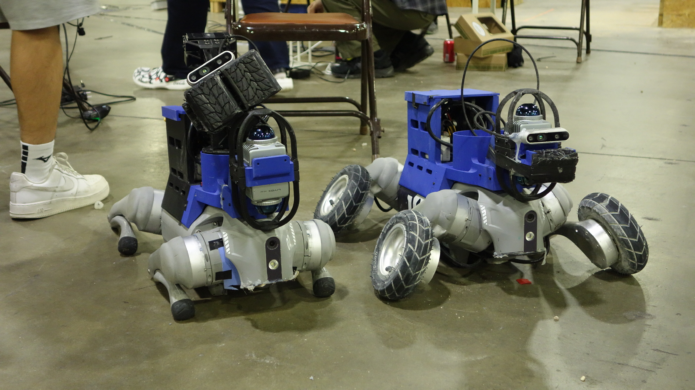 모바일 매니퓰레이터는 많이 출전하지 않을 것이라는 예상과는 달리 상단에 팔을 달고 나온 팀이 없지는 않았고, 거의 모든 팀이 유니트리 로봇을 데리고 출전했다. 상단에 3D 프린터로 출력한 전장부와 내부에 NUC, 가드를 장착한 LiVOX, 리얼센스를 달고 나온 구성이 거의 모든 팀이 동일했다.