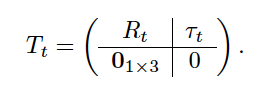 Homogeneous transform은 다음과 같이 나타낸다. 또한, 내비게이션 중인 로봇이 독립적인 자세 추정 시스템(VIO, 외부 모션캡쳐 등)을 가지고 있는 경우, 해당 시스템에서 출력되는 자세를 Splat-Loc 최적화 절차의 초기값(initialization)으로 활용하고, Splat-Loc의 추정치를 통해 이러한 자세를 보정(correction)할 수 있도록 하고자 한다. 우리는 카메라 Calibration 정보를 알고 있다고 가정한다.