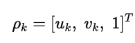 는 카메라 이미지에서의 k번째 매칭된 키포인트의 픽셀 좌표이며, K는 camera intrinsic 이다.