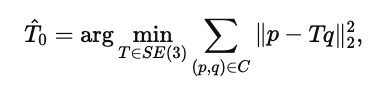 여기서 C는 (지도 포인트 p, 카메라 포인트 q) 쌍으로 이루어진 correspondences을 의미한다.