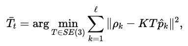 이라고 하자. 이제 우리는 초기 자세를 실제 자세에 가깝게 맞추기 위해, 다음의 reprojection error 최소화 문제를 푼다.