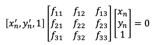 따라서 대응점을 가지고 다음과 같은 수식을 만들어낼 수 있습니다.