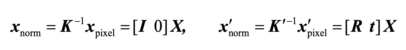이 과정에서 사용되는 포인트들은 모두 Instrinsic parameter 를 곱해서 물리적 공간에서 Normalized 된 좌표임을 기억할 필요가 있습니다. (pixel coordinate 상의 좌표가 아닙니다.)