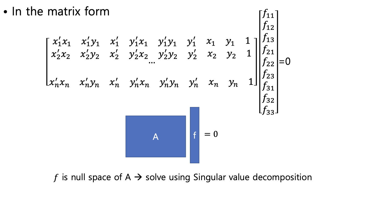 1. 첫 번째 SVD : 매칭점들을 가지고 F 를 구하기 위한 SVD