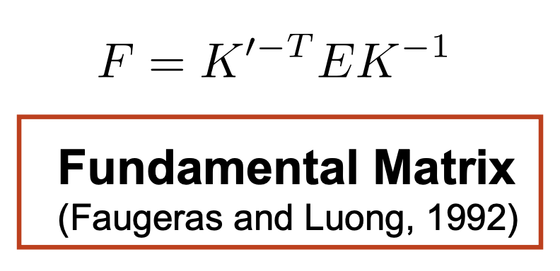 이와 같은 과정을 거쳐서 Essential Matrix 를 통해 Fundamental Matrix 를 구할 수 있습니다.
