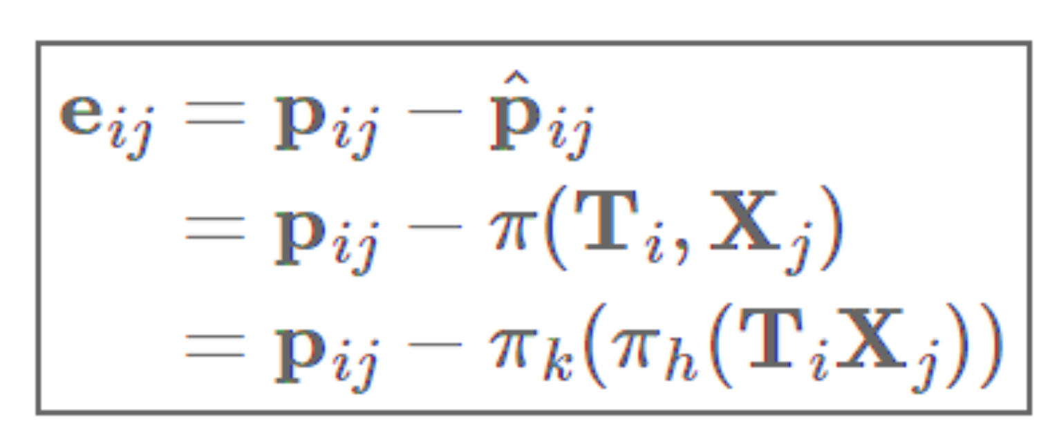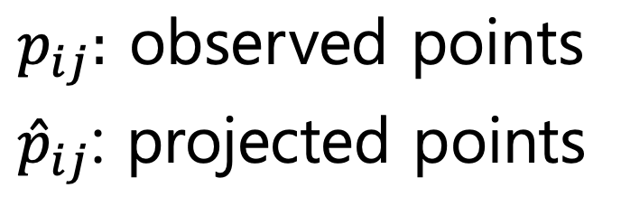 \(e_{ij}\) 는 \(i\) 번째 이미지에서 \(j\) 번째 3D point 를 투영했을 때, 정답과의 차이(에러)입니다.