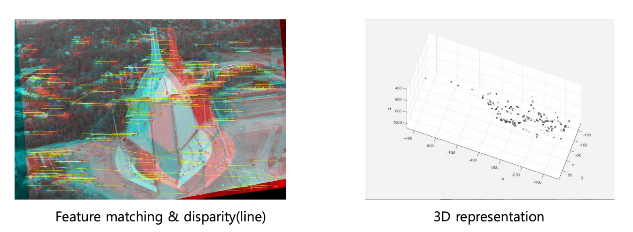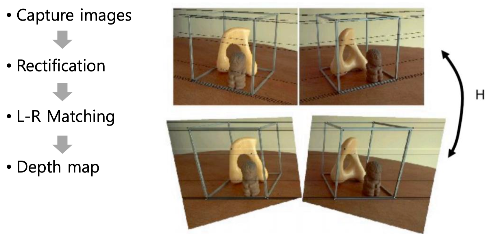 Rectification 을 하게 되면, 대응점들은 반드시 같은 높이에 있게 됩니다. 따라서 이 과정을 수행하게 되면 대응점을 같은 높이에서만 찾으면 됩니다.
