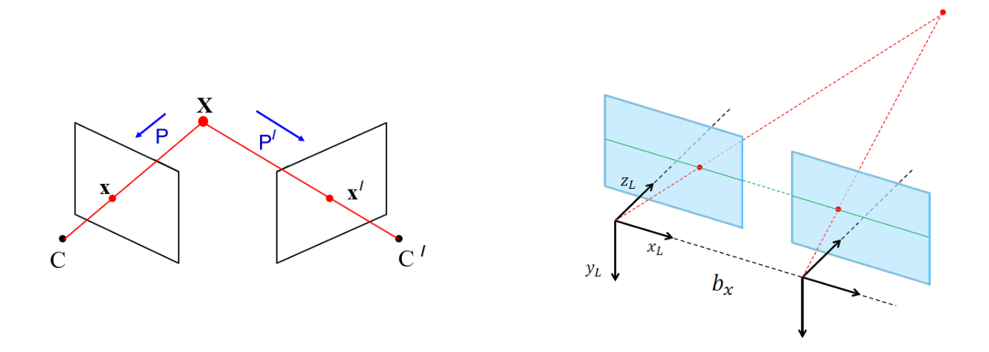 따라서 실제 세계의 Stereo 카메라는 왼쪽 그림처럼 구성되어 있는 경우가 많습니다. 이런 경우에 사용되는 것이 Epipolar Geometry 입니다.