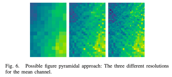 포인트 클라우드 패치는 NN 처리의 일부인 Convolution 필터를 적용하기 전에 다중 채널 이미지로 Flatten 됩니다. 패치의 각 포인트는 이미지에서 가장 가까운 픽셀에 할당됩니다. 이미지의 밝기 값은 3D 포인트의 높이 값에 해당합니다.