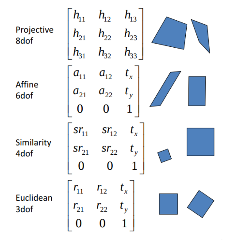 Transformation matrix is capable of including translation, rotation, scaling, cropping and non-rigid deformations