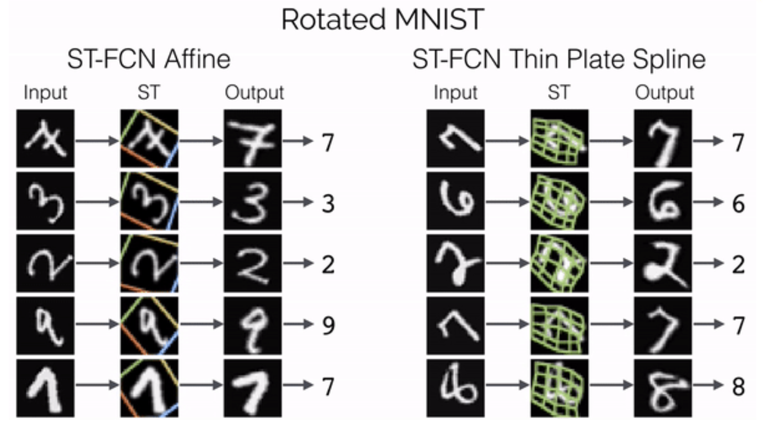 이 부분을 이해하려면 Homography 와 같은 이미지 상의 transform 에 대해서 알고 있을 필요가 있습니다. STN 은 결국 원하는 모양이 되도록 input 이미지들을 transform 시켜주는 네트워크이기 때문에, 저 \(\Theta\) 의 개수는 우리가 어떤 transform 을 사용할 것인가 ? 에 따라 결정됩니다.