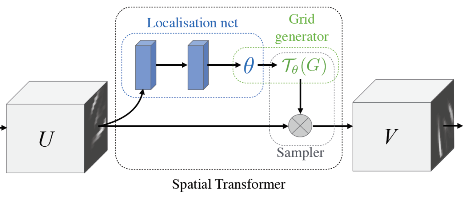 Spatial Transformer 는 다음과 같이 세 가지 구성 요소로 이루어져 있습니다.
