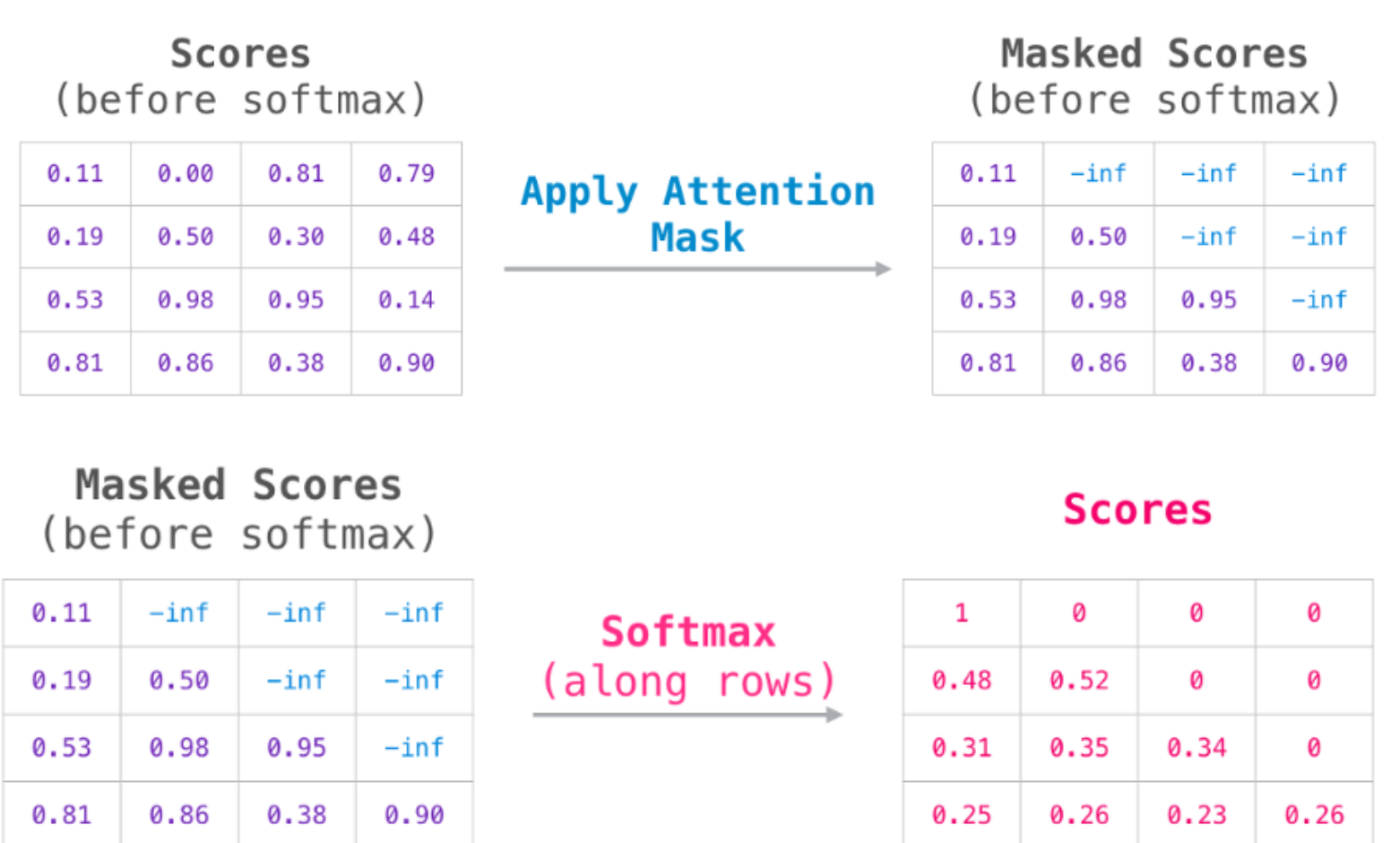 우리가 만약 정답을 가지고 있어도, 학습을 시킬 때는 정답을 알고 학습을 하면 안 됩니다. 그렇기 때문에 뒤에 있는 정보들을 다 감추고 입력을 넣어 주어야 합니다.