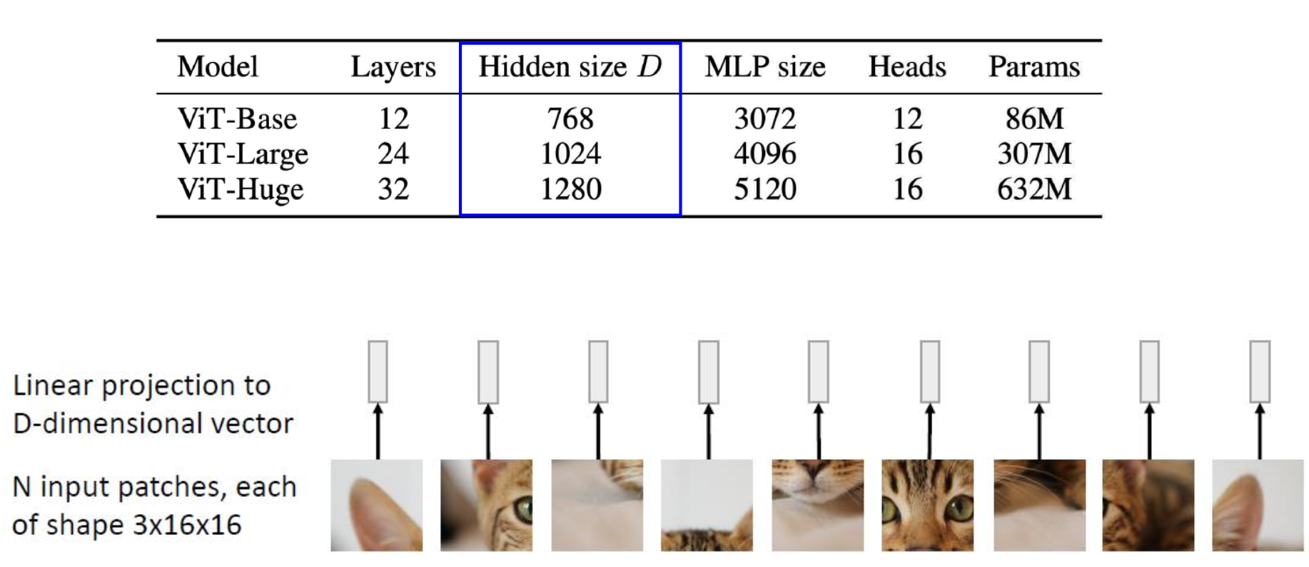 Vision Transformer 에는 크게 3가지 모델이 있는데, 각각 Base, Large, Huge 입니다.
